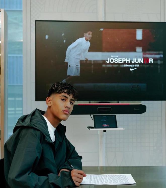 各运动品牌都渴望与加布里埃尔合作,曼联的主赞助商阿迪达斯努力想要将他招入麾下,但最终C罗合作的耐克击败了死敌,成功与他签订了赞助合同,他们将其视为「C罗的王位继承人」(heir to Cristiano Ronaldo’s throne)。